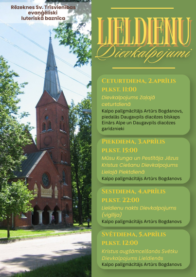 Klusās nedēļas un Lieldienu Dievkalpojumi 02.-05.aprīlī